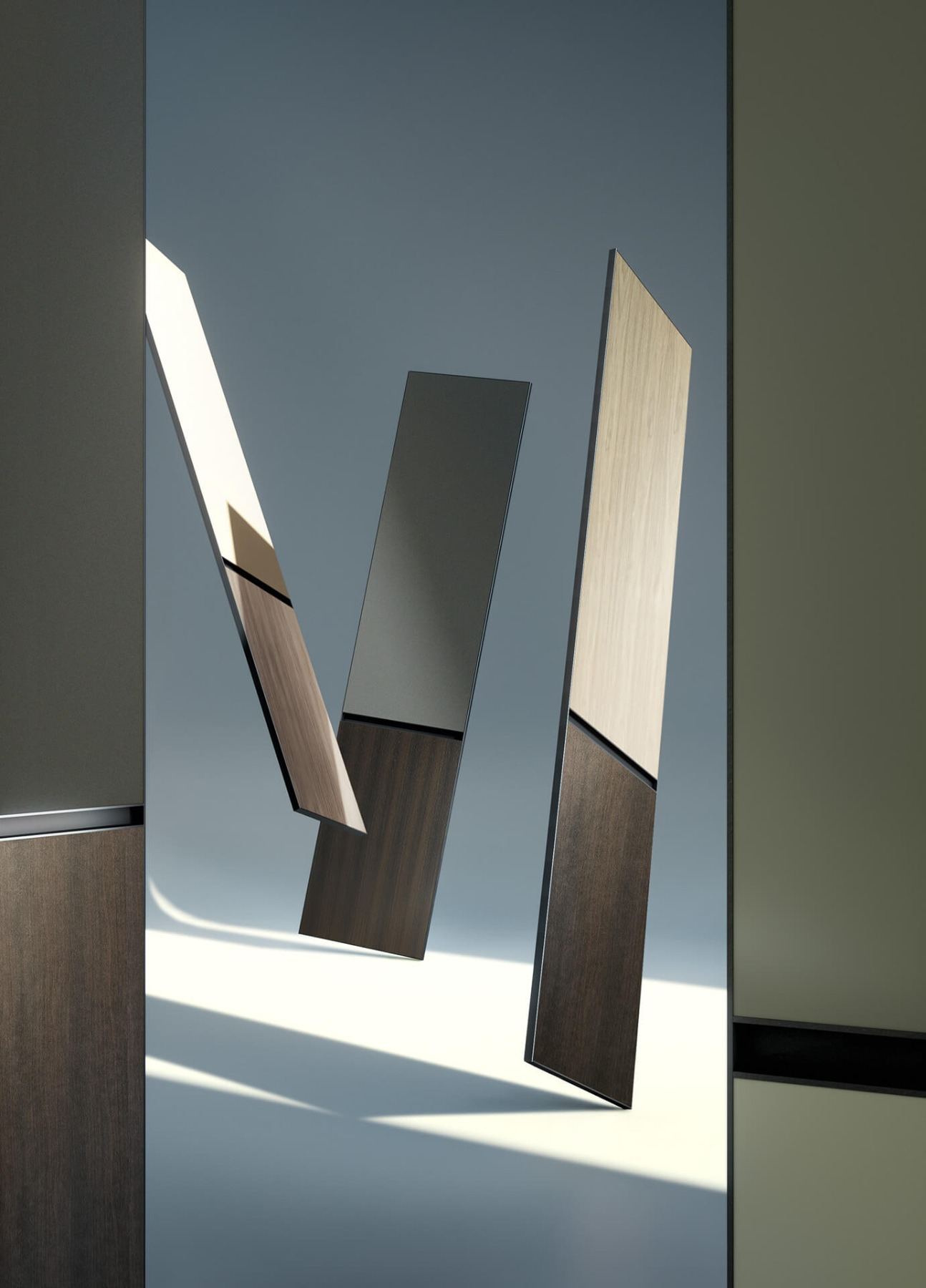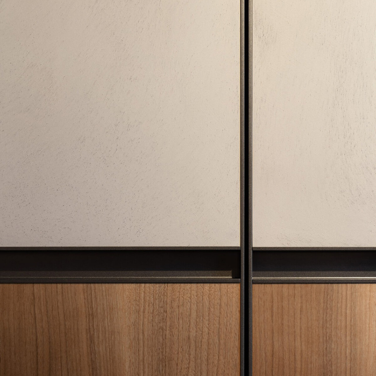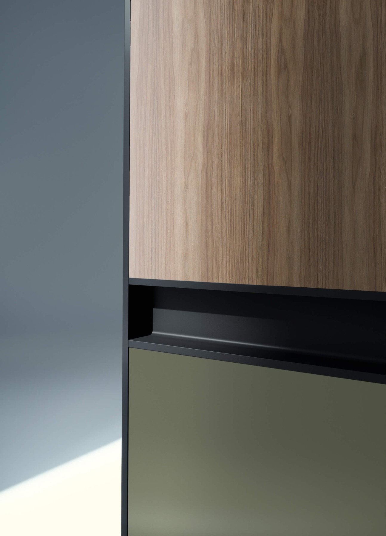 A wardrobe that celebrates the meeting point of different materials, making material and chromatic diversity its strong point. Lena is designed by Piero Lissoni, it is a wardrobe with highly decorative doors that reveals its bold character in the combination of different finishes. The handle disappears into the architecture, becoming the defining element that marks the boundaries of the various materials. Lena is complete thanks to the extensive catalog of equipment designed to meet multiple specific functional needs such as chests of drawers, trouser racks, belt holders, shoe racks, shelves and bars, coat hangers and an integrated LED light system.