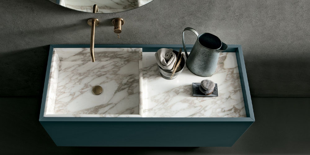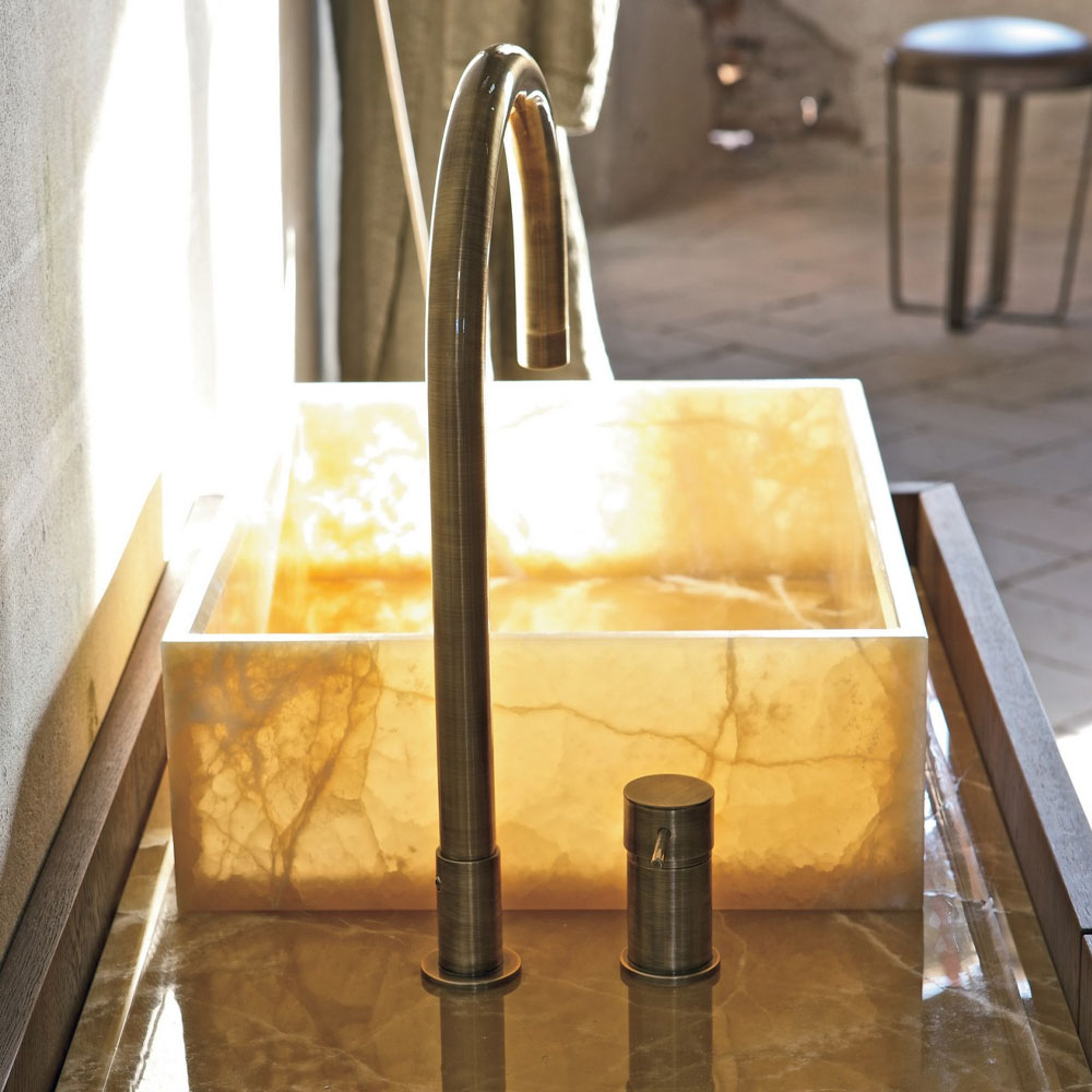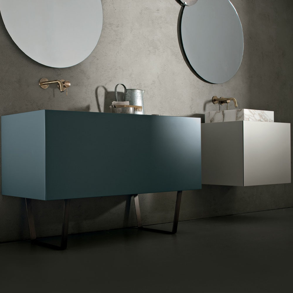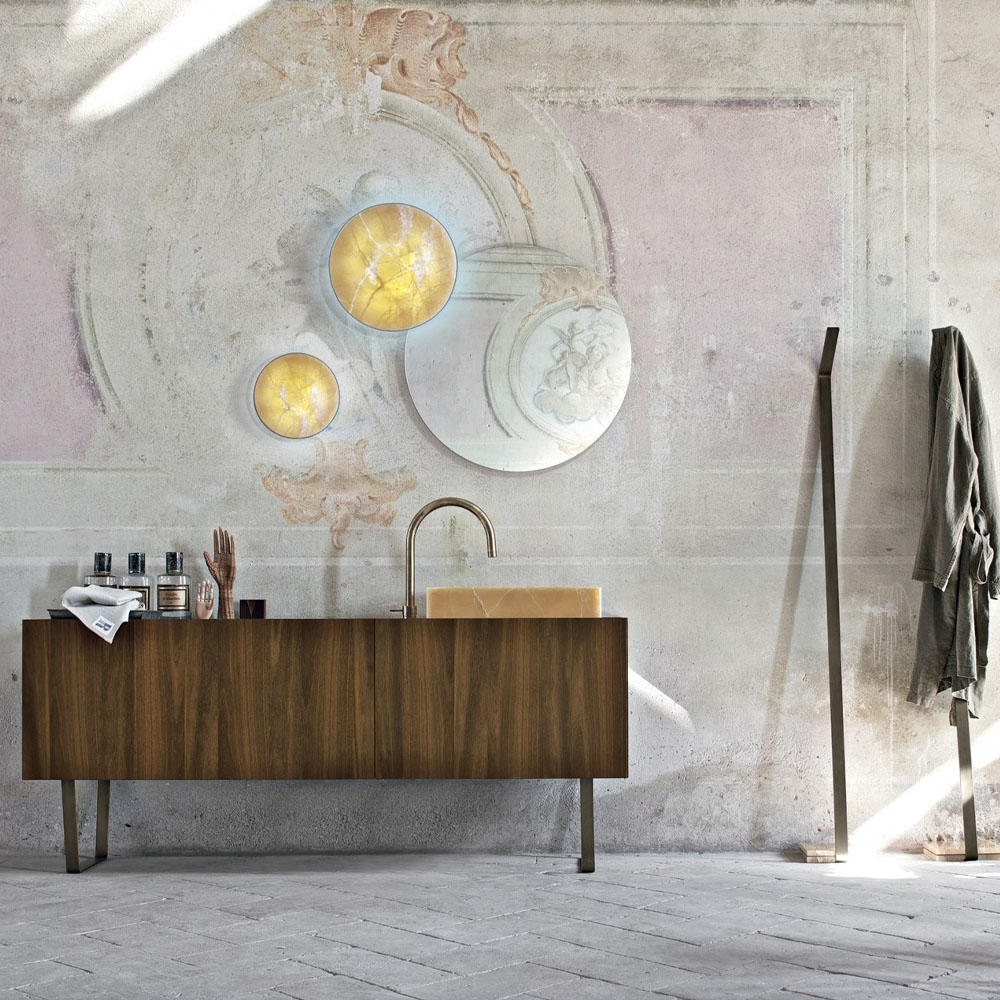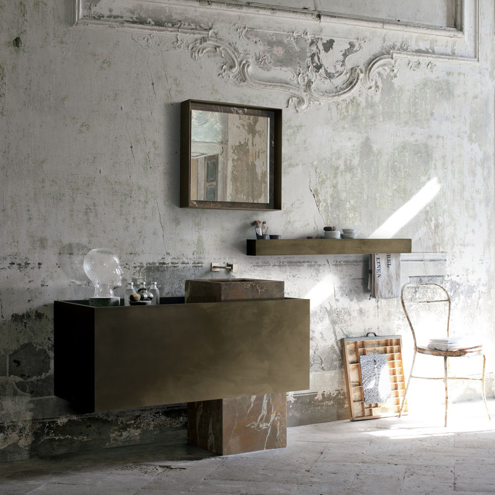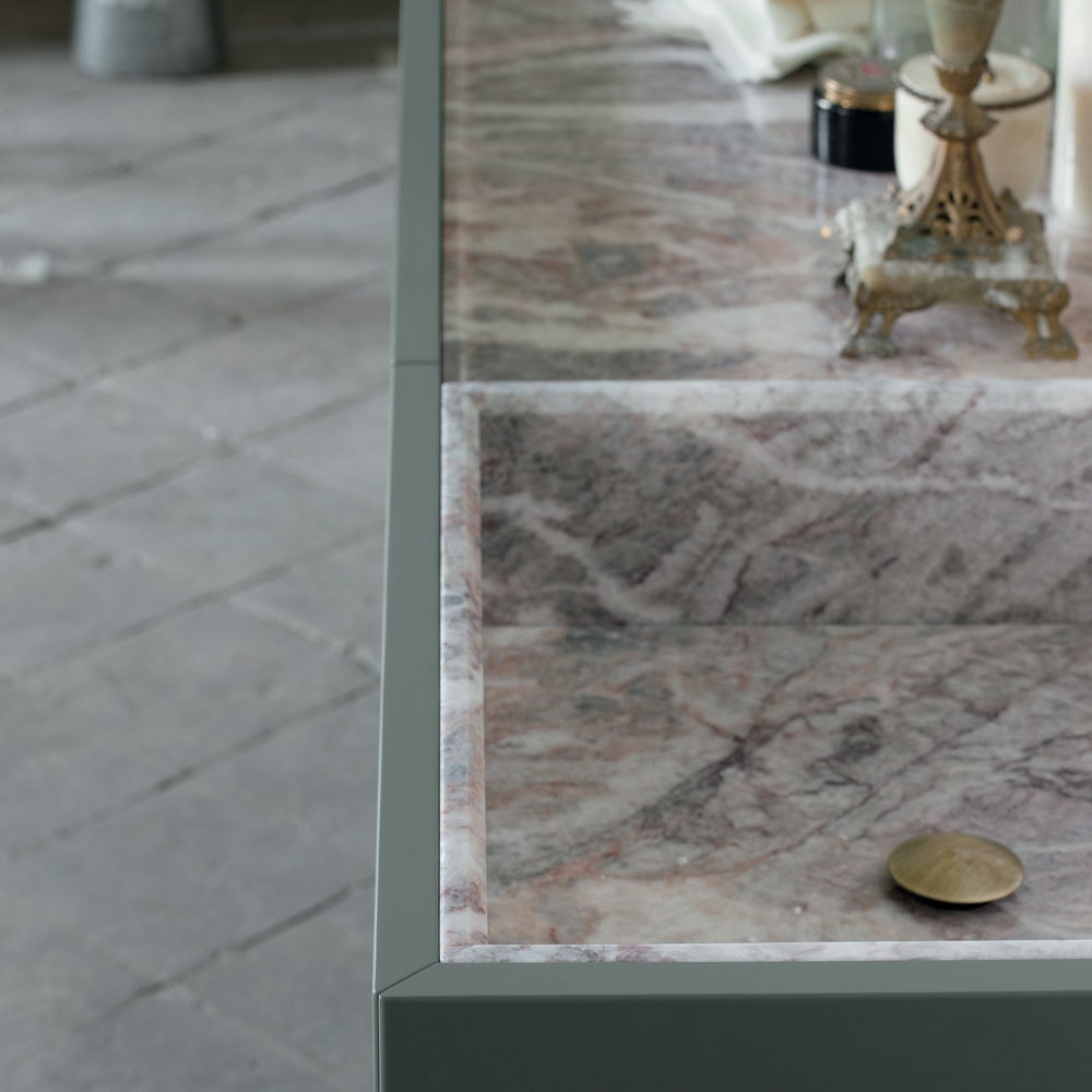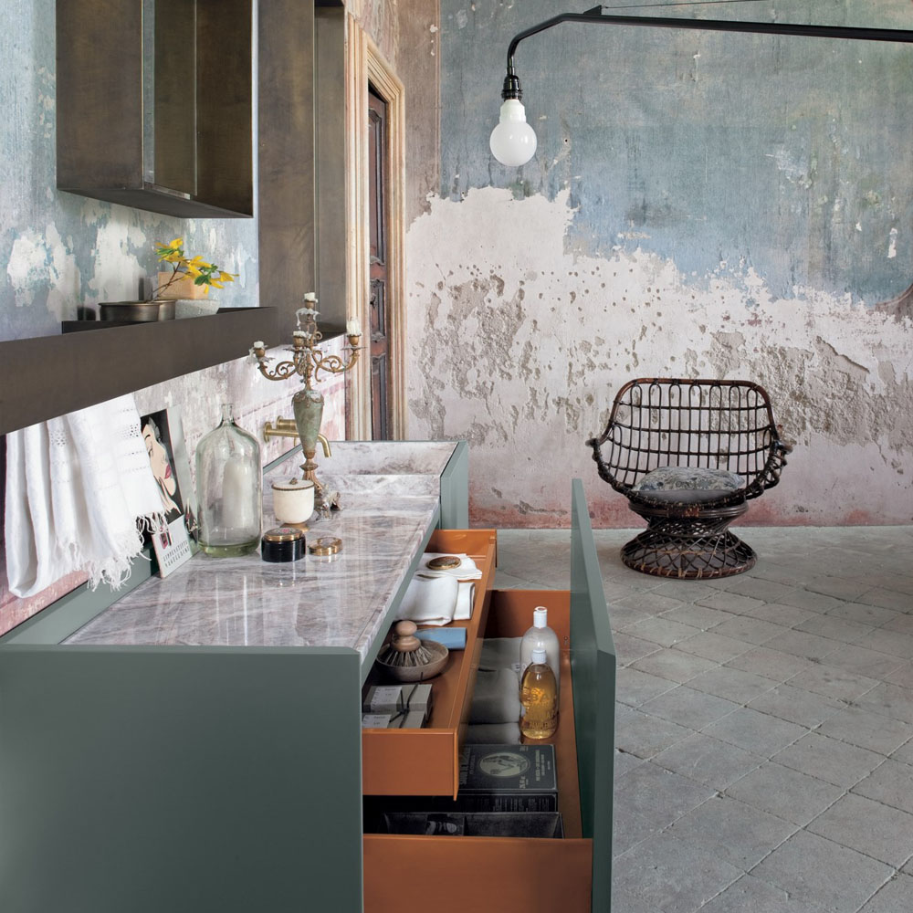 Must is a bathroom furniture set characterized by new and precious materials such as Onice Brown, Marmo Paonazzetto, or Marmo Fior di Pesco Carnico. Precious woods, such as Olmo and Eucalipto Termocotto, and oxidized effect metal finishes are the essence of Must: the juxtaposition with the delicate lines traces out a space that goes beyond time. The smooth details and enveloping sensuality of the materials create a timeless space, where everything is weightless and the delicate lines go hand in hand with unrepeatable emotions. Harmony and carefully studied proportions. The style of a project goes beyond definitions, becoming synonymous with luxury and pleasure. The external surfaces show off a variety of sophisticated finishes: the different shades of the oxidized effect metal finish, the oriental allusions of Onice Brown, and the warmth of the precious wood are juxtaposed with the shine of the lacquers and marbles to create a unique and timeless atmosphere.