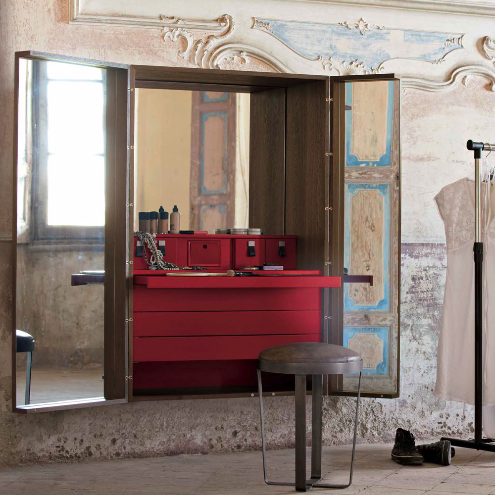 The external surfaces show off a variety of sophisticated finishes: the different shades of the oxidized effect metal finish, the oriental allusions of Onice Brown, and the warmth of the precious wood are juxtaposed with the shine of the lacquers and marbles to create a unique and timeless atmosphere.