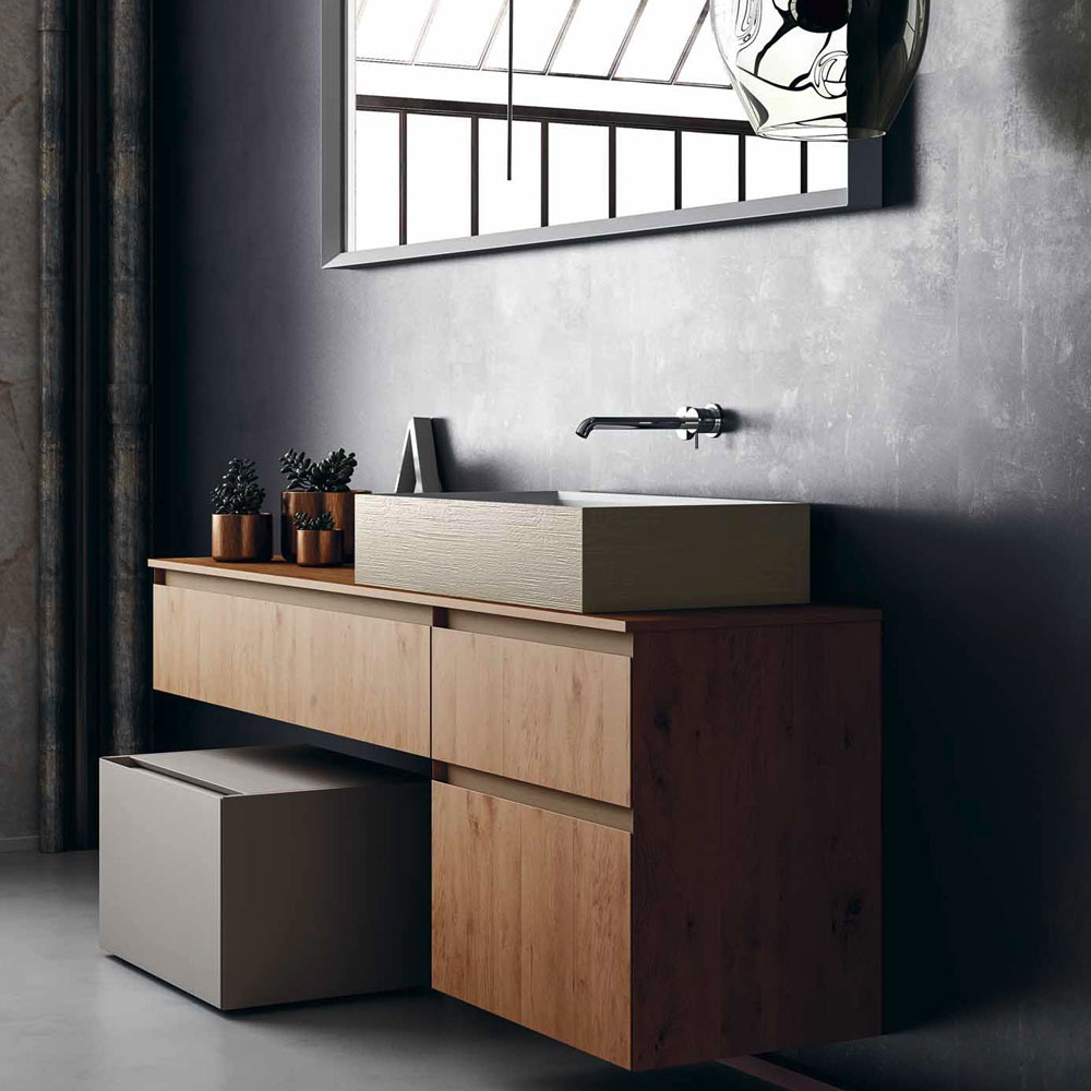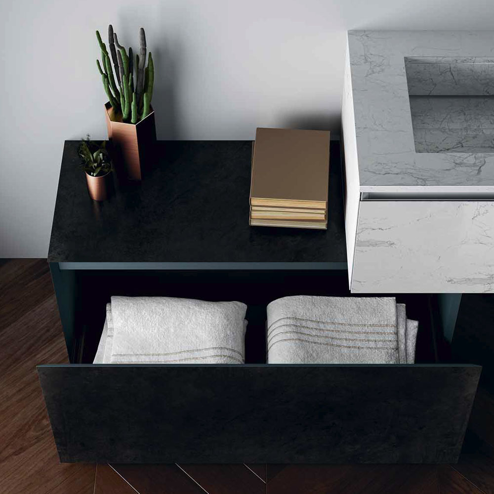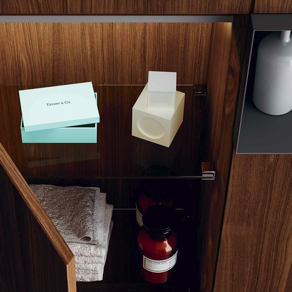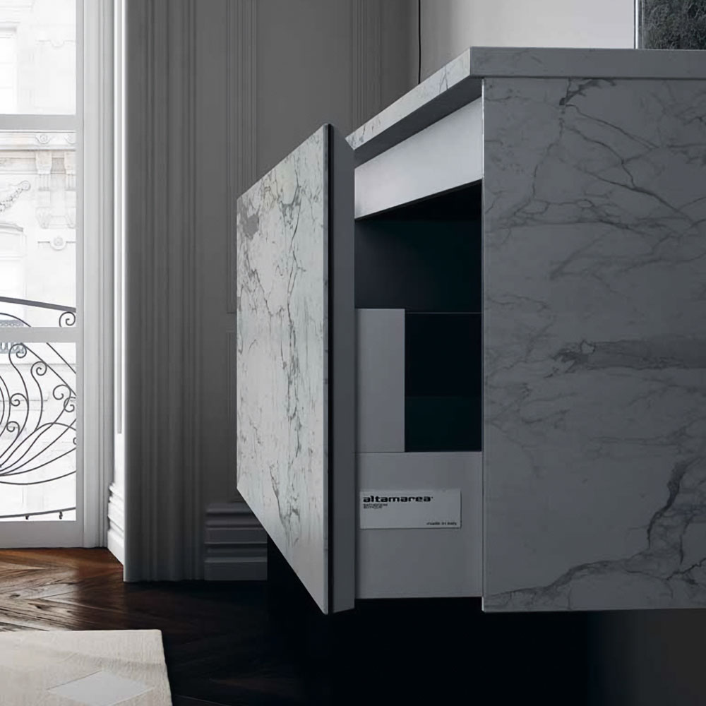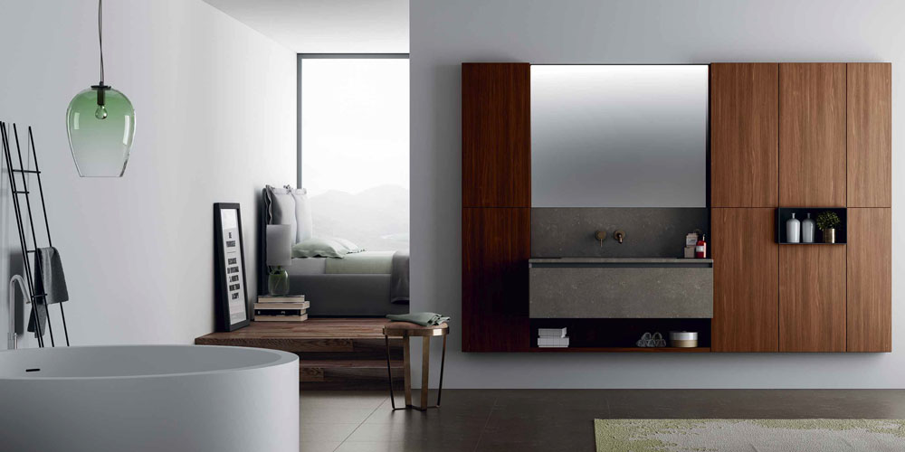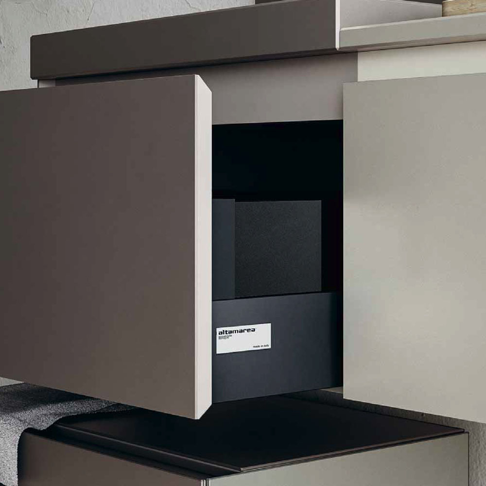 360Gradi is a bathroom furniture set with a markedly contemporary design. A unique collection by way of its distinctive features able to satisfy a range of different styles, and modular structure that easily adapts to a broad variety of materials. Details that convey a style, attentiveness, and thought reserved for analysis. Stories of different experiences and lifestyles. 360Gradi is the opportunity to interpret countless living projects at will. Traditional materials combined on the back of the principle of contemporary elegance. The 360Gradi collection ranges from sand or gloss lacquers to precious woods, all of which can be personalized with door and side finishes in porcelain stoneware, Fenix NTM®, metals, Corian®, lacquered glass, and even the same wood panels as those used for the flooring.