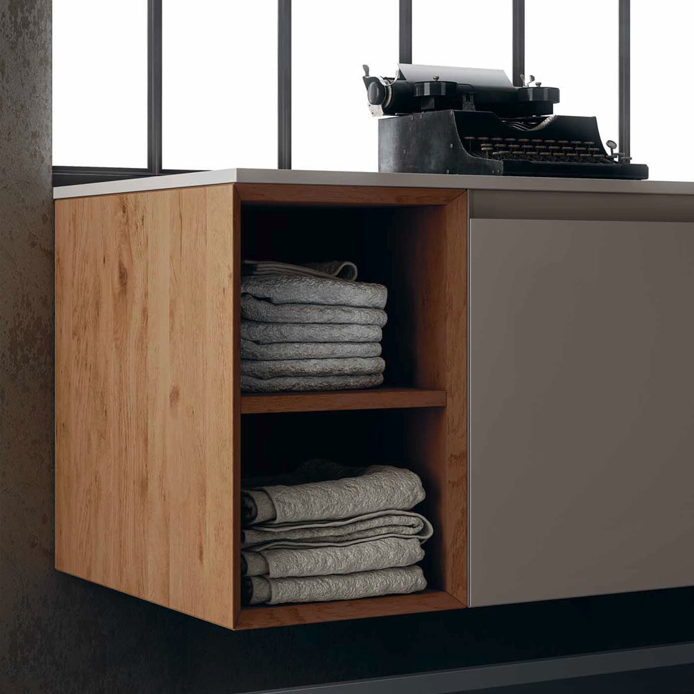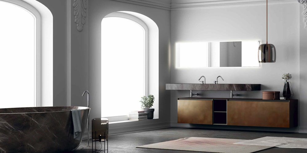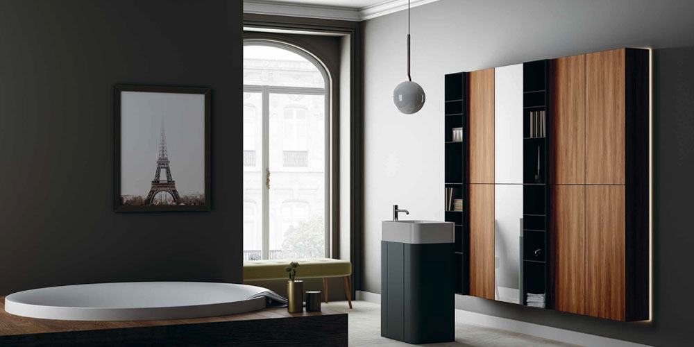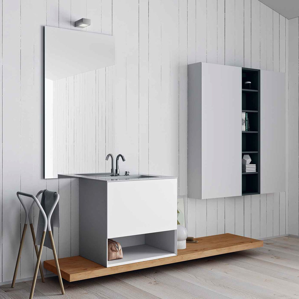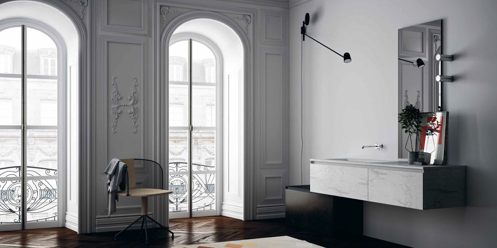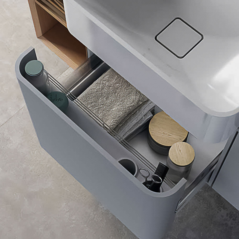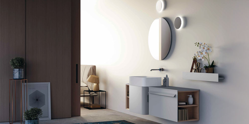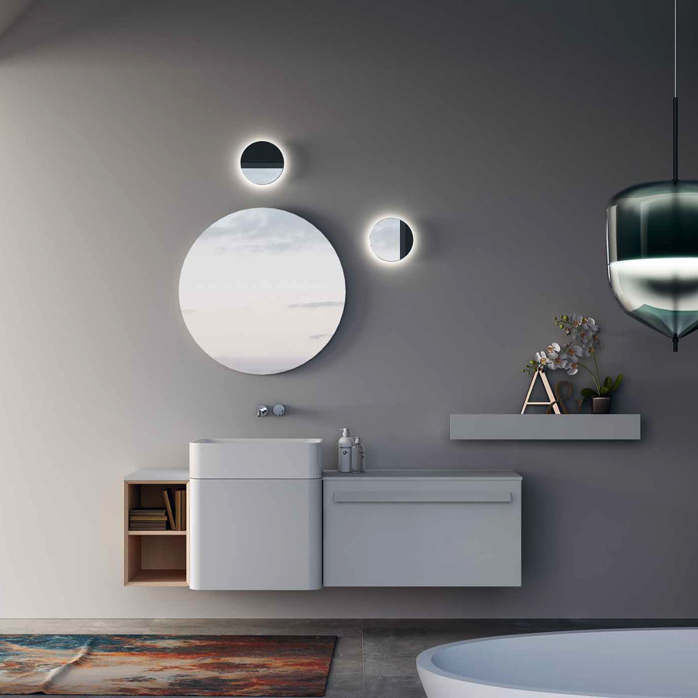 360Gradi is a bathroom furniture set with a markedly contemporary design. A unique collection by way of its distinctive features able to satisfy a range of different styles, and modular structure that easily adapts to a broad variety of materials. Details that convey a style, attentiveness, and thought reserved for analysis. Stories of different experiences and lifestyles. 360Gradi is the opportunity to interpret countless living projects at will. Traditional materials combined on the back of the principle of contemporary elegance. The 360Gradi collection ranges from sand or gloss lacquers to precious woods, all of which can be personalized with door and side finishes in porcelain stoneware, Fenix NTM®, metals, Corian®, lacquered glass, and even the same wood panels as those used for the flooring.