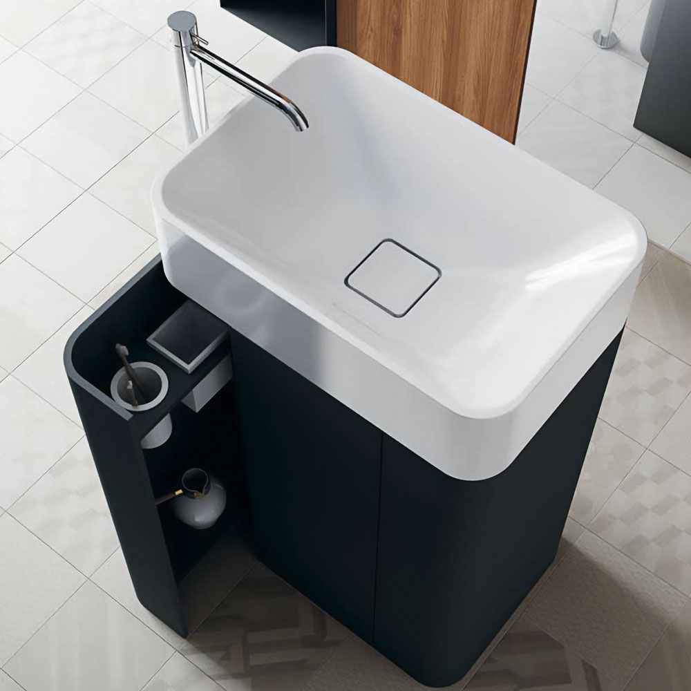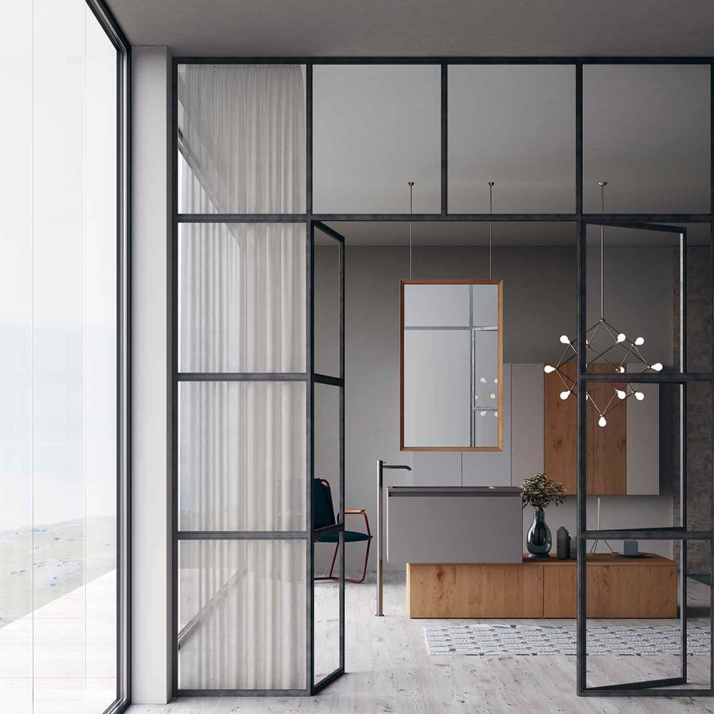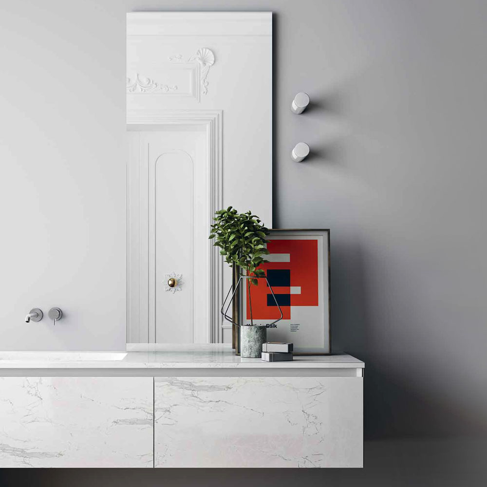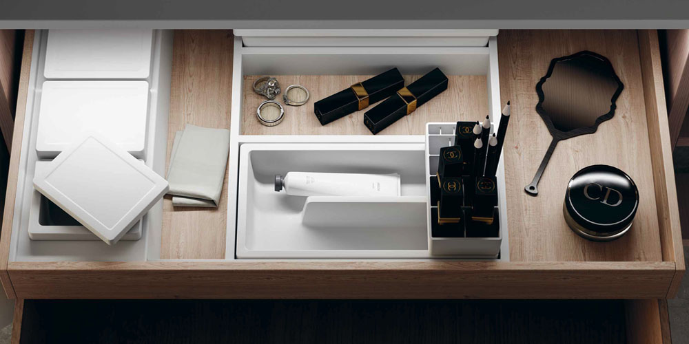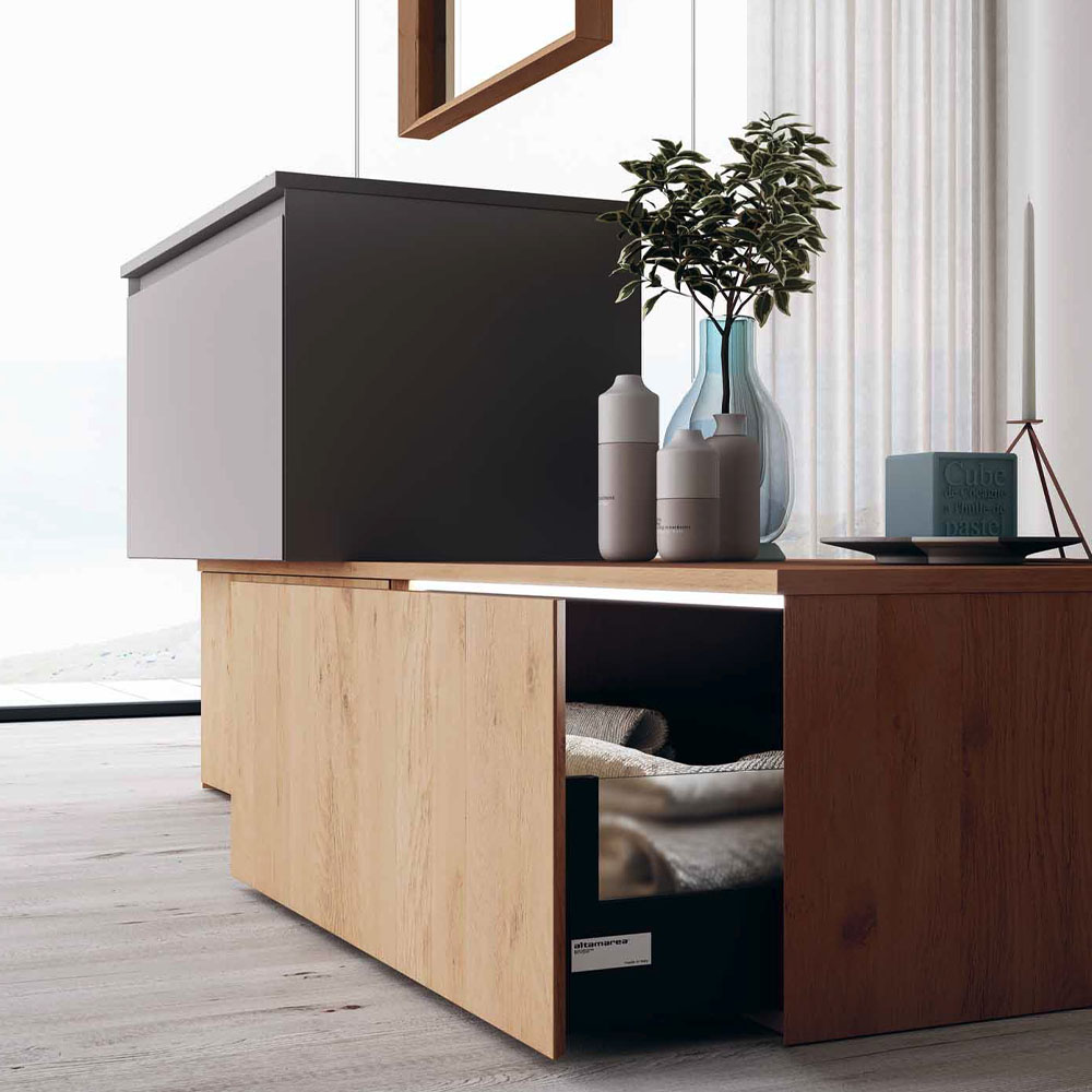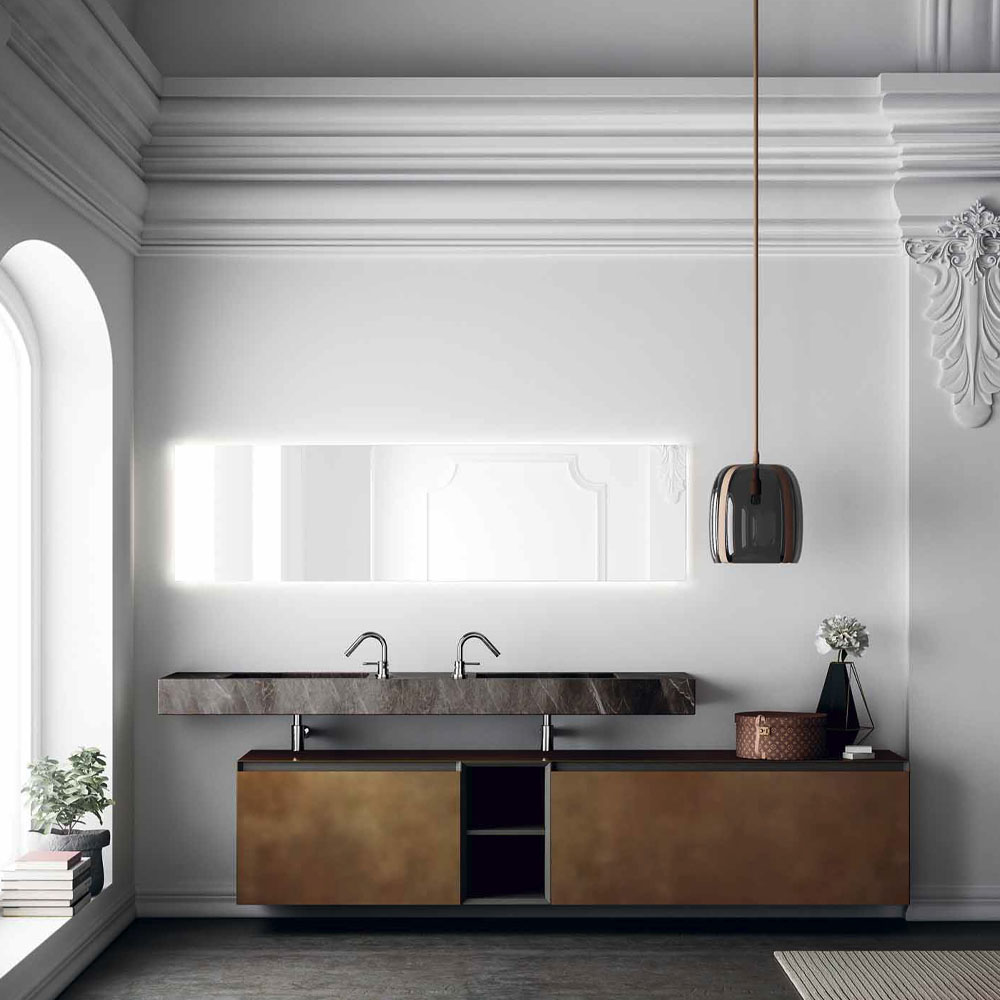 360Gradi is a bathroom furniture set with a markedly contemporary design. A unique collection by way of its distinctive features able to satisfy a range of different styles, and modular structure that easily adapts to a broad variety of materials. Details that convey a style, attentiveness, and thought reserved for analysis. Stories of different experiences and lifestyles. 360Gradi is the opportunity to interpret countless living projects at will. Traditional materials combined on the back of the principle of contemporary elegance. The 360Gradi collection ranges from sand or gloss lacquers to precious woods, all of which can be personalized with door and side finishes in porcelain stoneware, Fenix NTM®, metals, Corian®, lacquered glass, and even the same wood panels as those used for the flooring.
