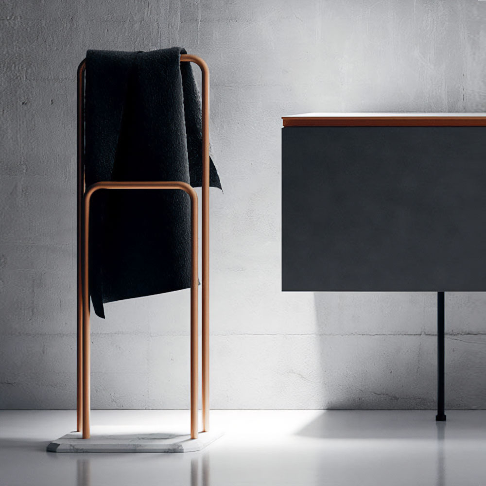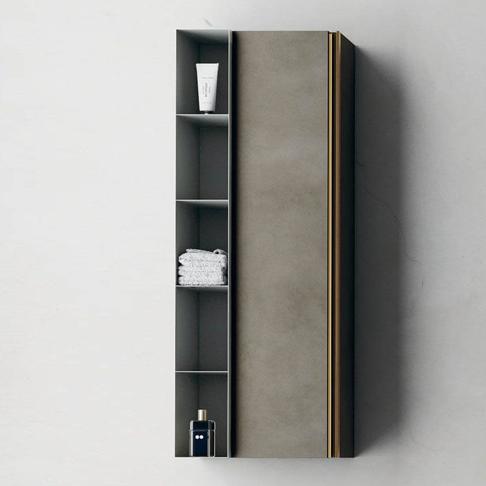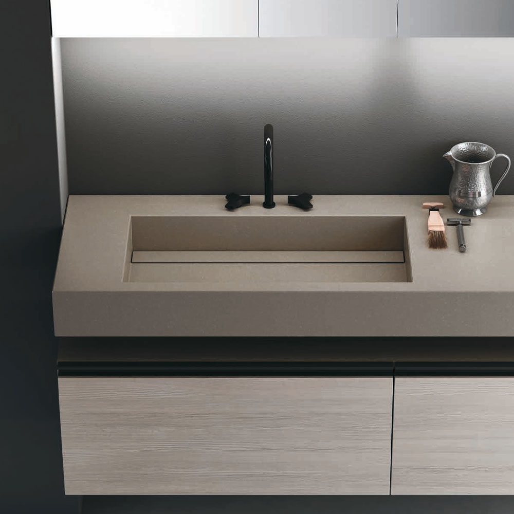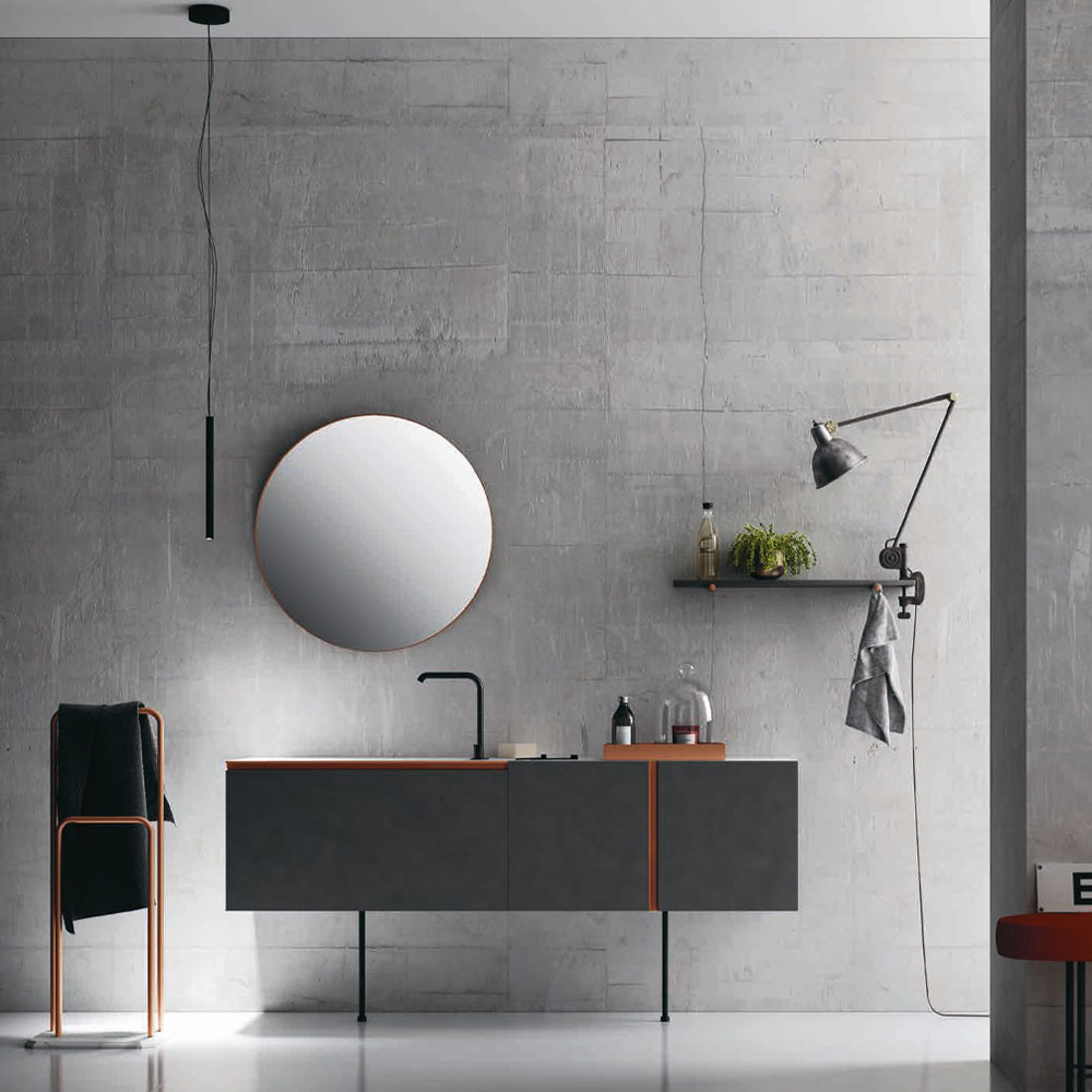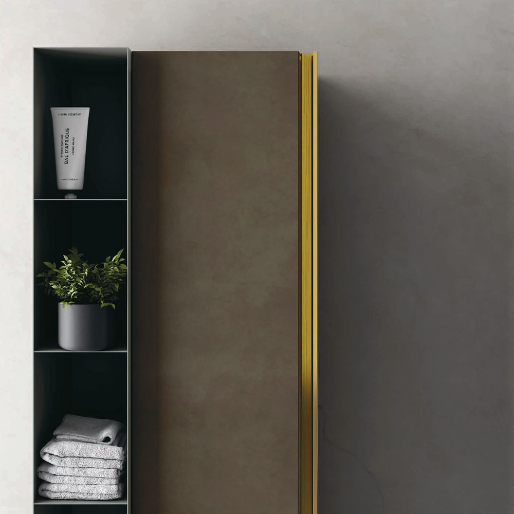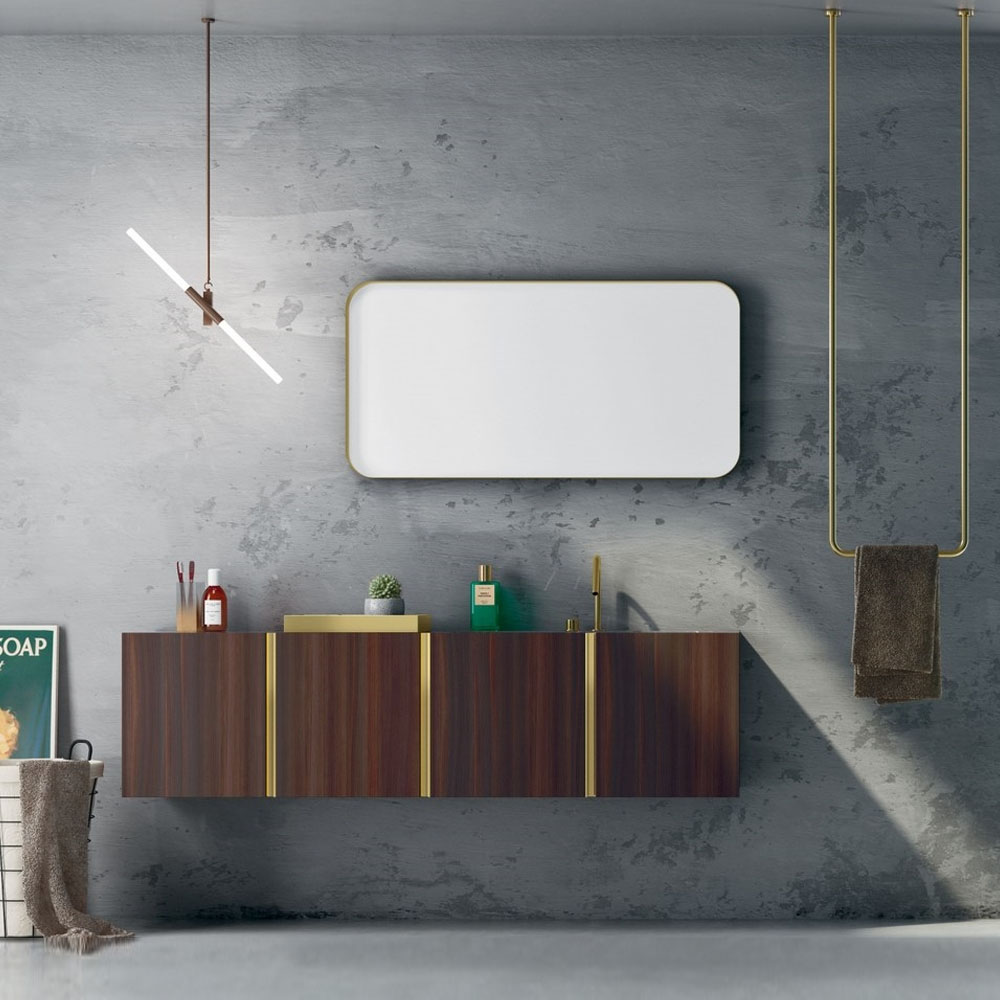 Opera is an extremely refined bathroom furniture set, inspired by the Scandinavian sideboards of the fifties and sixties. A collection entirely based on a single technical detail, treated with consistency, enhanced with modern finishes, and combined with exclusive materials: a handle discovers its own personality and becomes a decoration. The splendor of the brass and copper, along with the free choice of various finishes, have generated countless customizations where the beauty of the finishes and practicality of the furnishings find expression. The minimalist style of Opera is ideal for both the main and guest bathroom. A handle discovers its own personality: an entire collection is born. Exclusive materials and innovative proposals are combined on the back of the principle of minimalist elegance.