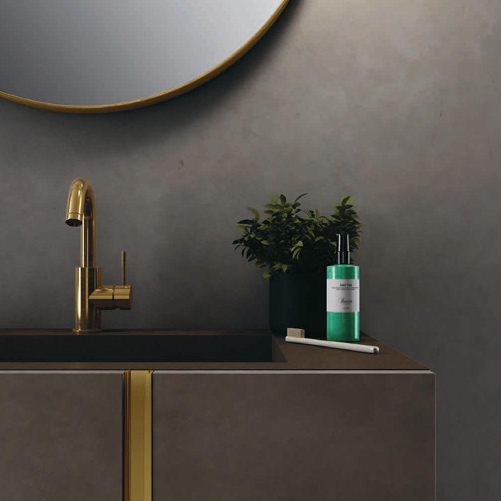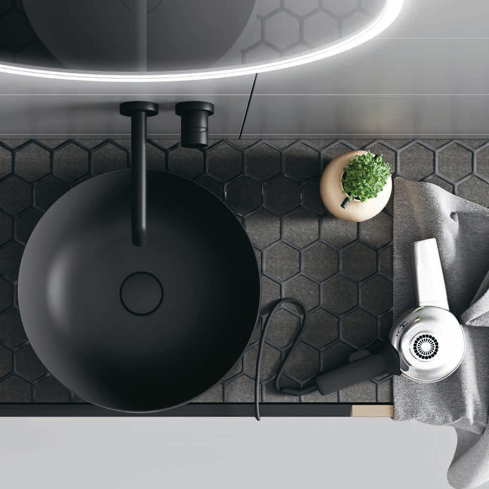 Exclusive surfaces welcome new textural and color vibrations, enriching the mood of the composition.