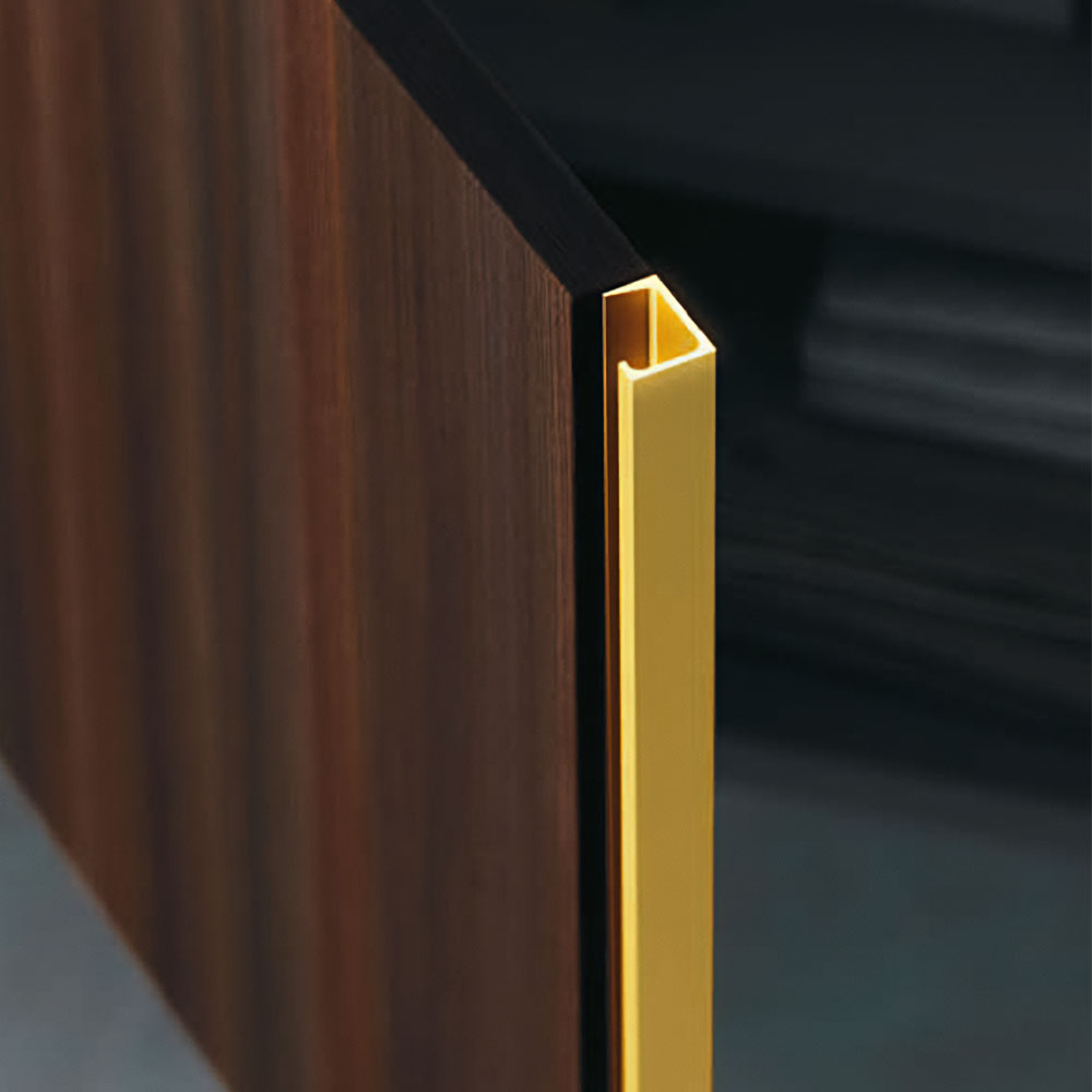 A handle with a linear design becomes a decoration and inspires an entire line of accessories, created exclusively for the collection.
